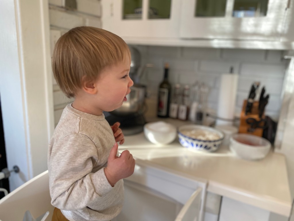 Lucky for us, Jack does show an interest in cooking. Or maybe not cooking specifically, but he loves to help with whatever it is Andrew and I are doing whether its cooking, unloading the dishwasher, or folding laundry. So we have taken advantage of this and allow him to help and be involved whenever the opportunity presents itself.