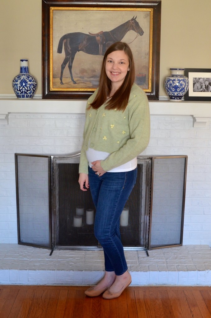 Outfit Details: MANGO Floral Embroidered Cardigan, Gap T-Shirt, Madewell Maternity Jeans, Margaux Demi Flats (Get 10% off with code LIVINGTAYLORED10)