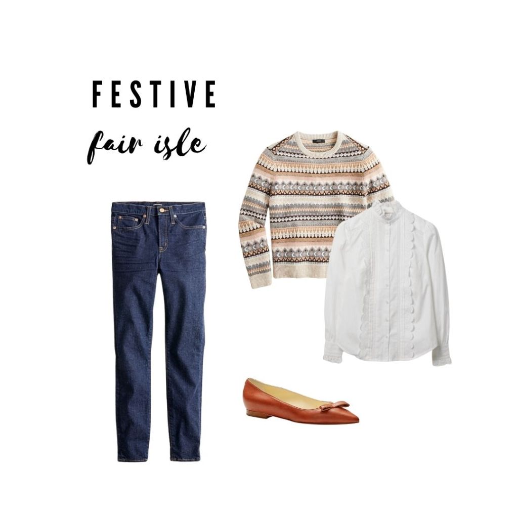 This outfit is my favorite (and I think the one I’m personally wearing for Thanksgiving Day). I love a good fair isle sweater and since we will be at the lake with family I don’t need anything too dressy. But I am excited to wear these beautiful Sarah Flint flats because they pair perfectly with the sweater and button down for a polished look. The unique bow detail is my favorite and gives them a little extra character too. I know these will be shoes I reach for regularly.