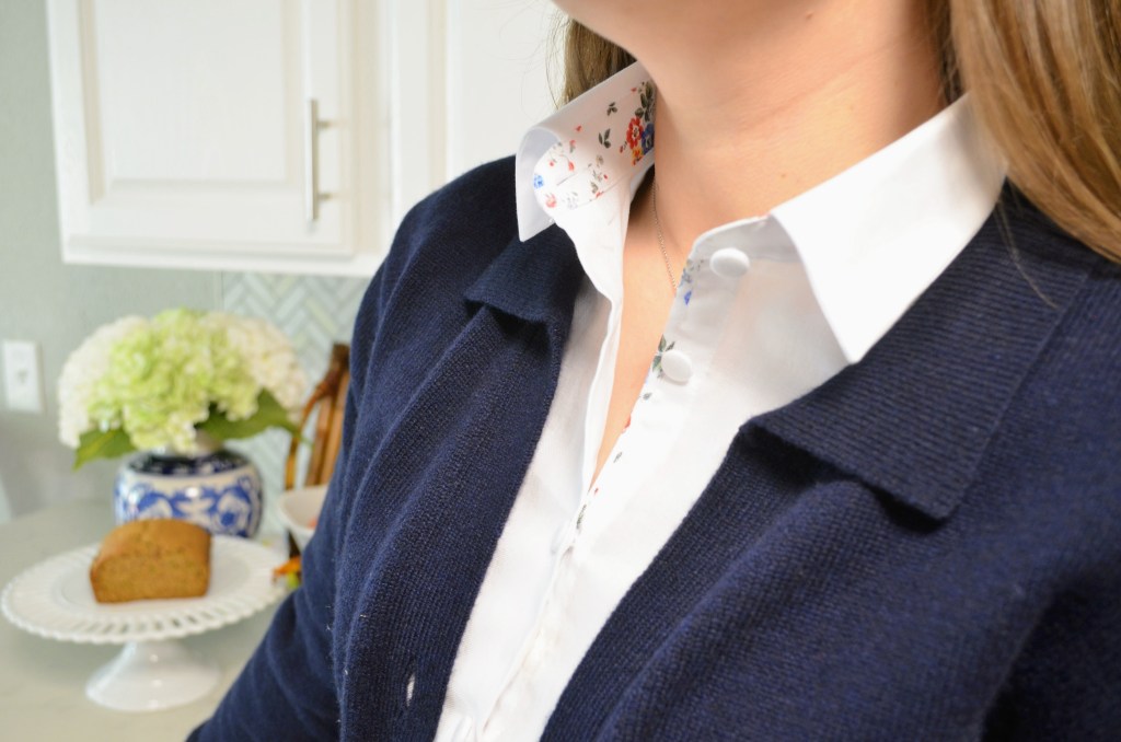 I threw this cozy cardigan on as soon as I opened my package and I’m actually wear it over a dress as I write this post. The contrast trim of the sleeves stood out to me as a fun way to add a bit more color to a simple outfit. As someone who usually sticks to navy and beige I like the additional pops of lighter blue and I knew it would look especially good with the floral trim shirt.