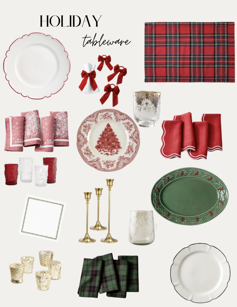 I am always drawn to beautiful table settings and this time of year there is no shortage of lovely pieces. I’ve rounded up some of my favorites that are perfect whether you are shooting for Classic Christmas or a Winter Woodland.