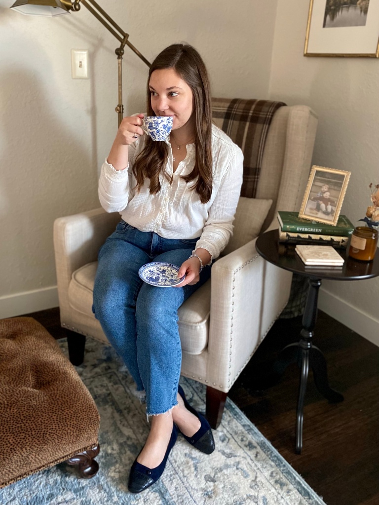 My goal wasn’t to wear anything fancy or truly “dressy” but to wear “real” clothes. Yes it ca be tempting to wear athletic clothes or pajamas when you don’t leave the house often, but putting on jeans and a cute top can make a huge difference in how I approach the day.