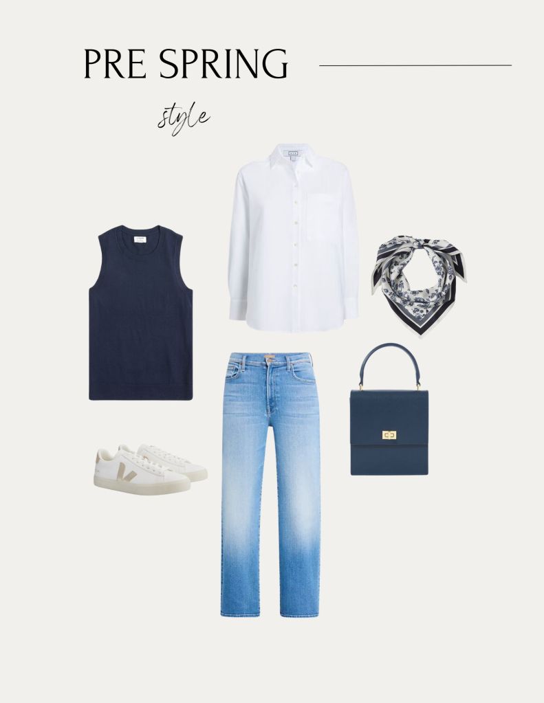 While I treat blue and white as a year round combo I really love it for warmer weather. This blue and white silk scarf is so pretty for spring. I can’t wait to wear it paired with my favorite dress. But for now I’m adding it to a button down and sweater vest.
