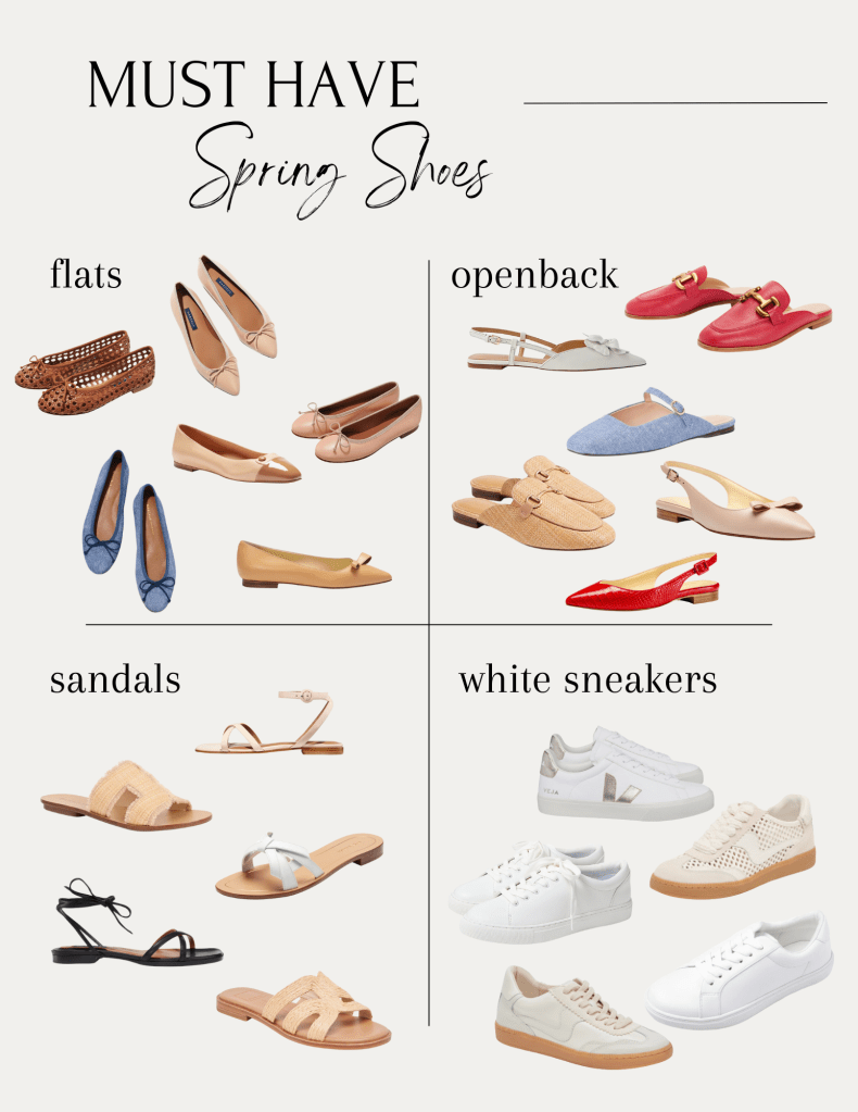 Warmer weather means its time for some of my favorite shoes to shine. While I love fall & winter styles I get so excited to breakout some of my favorite spring styles. There are four styles that I find myself reaching for the most in spring.