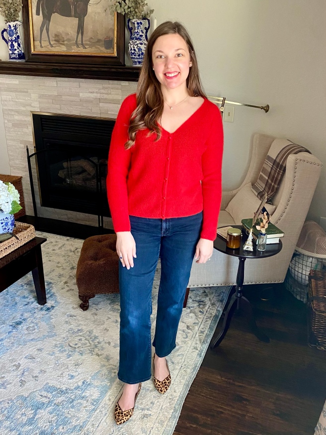 As a millennial I thought I would never say goodbye to my skinny jeans. I tried a few slim straight pairs and thought that was as far away from skinny jeans I could get. But then on a whim I decided to try a pair a little out of my comfort zone. I saw a dark wash pair of Mother Denim The Rambler and wanted to try. Much to my surprise they arrived and I loved them.