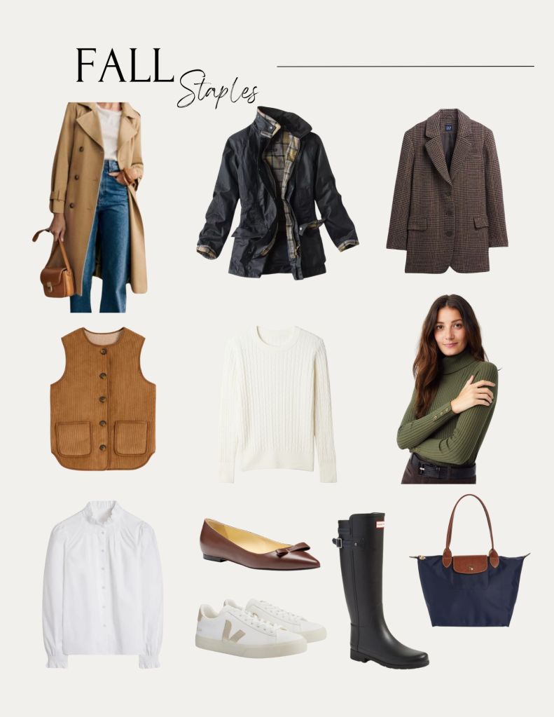 We tend to have rather wet falls here so I love having a weatherproof coat like my favorite Barbour or a classic trench coat. I have owned my Barbour Beadnell for 8 years and have loved it so much that I now have a second color. They are great for layering and hold up very well in rainy weather. I also love a trench coat. You can never go wrong with a classic tan trench and this one is truly the best, in my opinion.